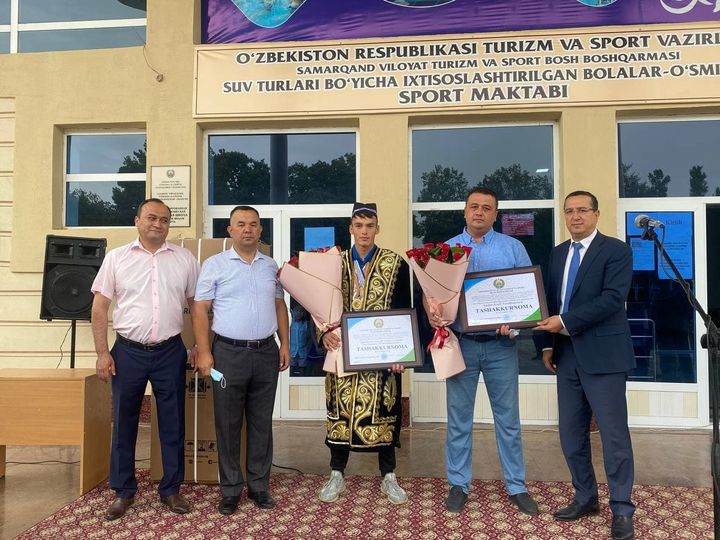 Бугун Самарқанд шаҳридаги сув спорт турлари бўйича ихтисослаштирилган болалар-ўсмирлар спорт мактабида академик эшкак эшиш бўйича Ўзбекистон тарихида биринчи марта жаҳон чемпионатида фахрли учинчи ўринни эгаллаган Шаҳзод Нурматовнинг мураббийи Соҳиб Саидов ҳамда унинг ота-онаси вилоят туризм ва спорт бош бошқармаси томонидан тақдирланди.