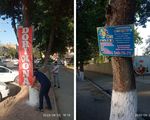 Мирзо Улуғбек кўчасидаги ахборот стенди, эълонлар доскаси ва давлат тилига мос келмайдиган ёзувлар, баннерлар олиб ташланди 08/07/2020 Самарқанд