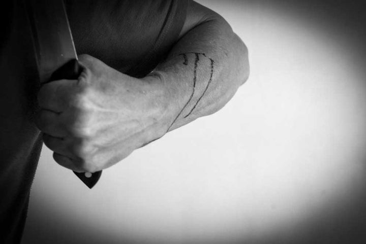 Qilgan ishining oqibatidan qurquvga tushgan Yu.A. o‘z joniga qasd qilishga urinadi. O‘sha pichoq bilan chap qo‘l bilagini kesadi, shuningdek, o‘z qorniga to‘rt marta pichoq sanchadi. Biroq niyati amalga oshmaydi.