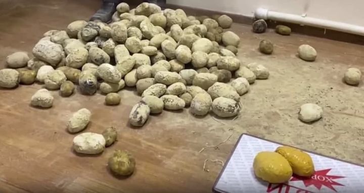 Xaltalarni ochib, ko‘zdan kechirganda 480 dan ortiq kartoshka qiyofasida bo‘lgan o‘ramlar topilgan. Ularda 77 kilogrammdan ortiq opiy va gashish giyohvandlik moddasi bo‘lgan.