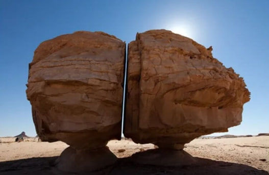 Saudiya Arabistoni cho‘llaridagi qadimgi Tayma aholi punktidan taxminan 45 kilometr uzoqlikda Yerdagi g‘aroyib qoyalardan biri turadi. Balandligi 6 metr bo‘lgan tosh o‘rtasidan kesib qo‘yilgandek turadi. Ba’zi odamlar hazillashib (ba’zida jiddiy) ulkan tosh o‘zga sayyoraliklarning qudratli lazeri yoki yaxshi rivojlangan qadimiy sivilizatsiya asbobi yordamida ikkiga bo‘lingan deb hisoblashadi.