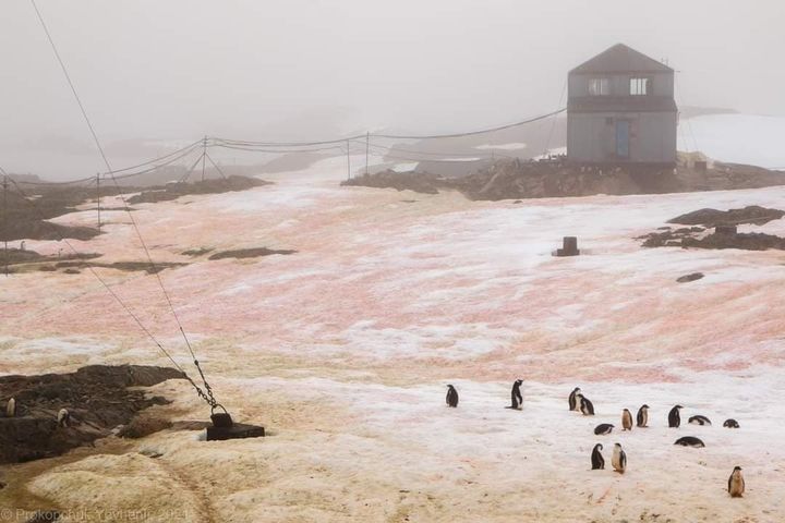 Antarktidaning "Akademik Vernadskiy" ukrain stansiyasi yaqinida qor "gulladi" va tovlanuvchi yashil-qirmizi tusga kirdi, deb xabar berdi Milliy Antarktida ilmiy markazining matbuot xizmati.