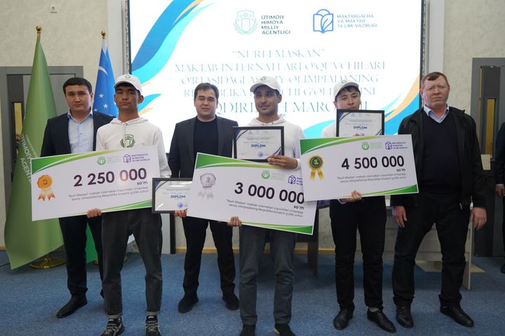 Tashkilotchilar tomonidan 1-, 2-, 3-o‘rinlarni egallagan o‘quvchilarga ixtisoslik fani bo‘yicha davlat oliy ta’lim muassasalariga kirish imtihonlarida maksimal ball olish huquqini beruvchi va uch yil muddat davomida amal qiluvchi elektron sertifikatlar, pul mukofotlari va esdalik sovg‘alari topshirildi.