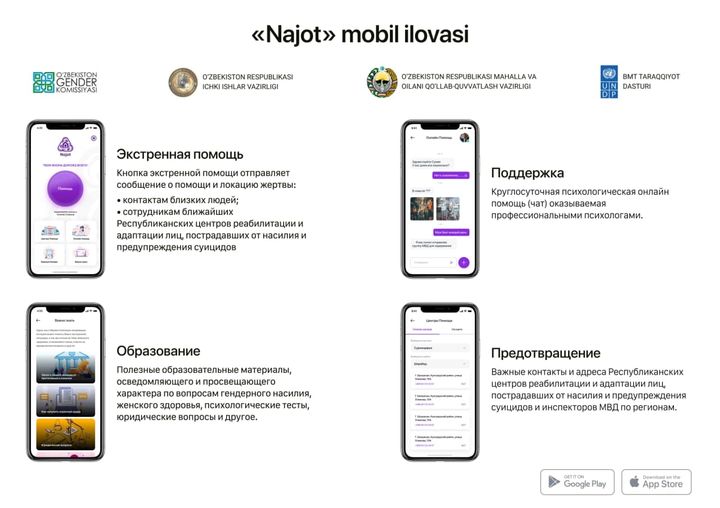O‘zbekistonda ayollarni zo‘ravonlikdan himoya qilish uchun «Najot» mobil ilovasi ishga tushirildi. Bu haqda Oliy Majlis Senati axborot xizmati xabar berdi.