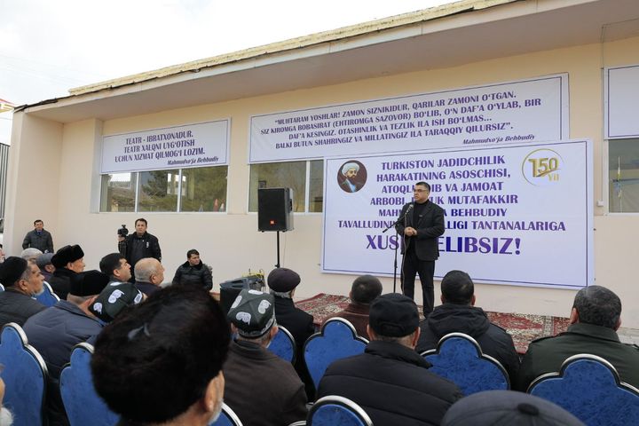 Tadbirlar doirasida ushbu madaniyat uyida viloyat musiqali drama teatrining ijodiy jamoasi tomonidan “Behbudiy” dramasi tomoshabinlar e’tiboriga havola etildi. Asarda ulug‘ ma’rifatparvarning murakkab taqdiri, xalq taqdiri uchun kurashi va fidoyiligi yorqin badiiy obrazlar orqali ifodalandi.
