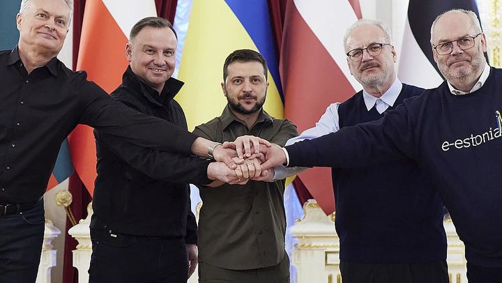 Polsha, Estoniya, Litva va Latviya prezidentlari Kiyevga tashrif bilan keldi va u yerda Vladimir Zelenskiy bilan uchrashdi. Ularga Germaniya prezidenti Frank-Valter Shtaynmayer qo‘shilishi kerak edi, ammo uning kelishiga ro‘yxushlik bo‘lmadi.