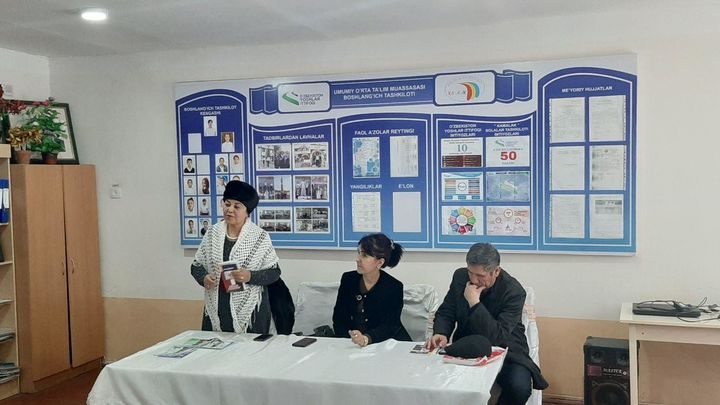 Unda O‘zbekiston Yozuvchilar uyushmasi a’zolari Xosiyat Bobomurodova va Rahmon Hojimurodov o‘quvchilarga bo‘sh vaqtlarda kitob o‘qishning ahamiyati haqida hayotiy misollar orqali gapirib berdi. O‘z navbatida o‘quvchilar kitobxonlik, ayrim asarlarning yozilish tarixi, qahramonlarining taqdiri bilan bog‘liq o‘zlarini qiziqtirgan savollar berib, javoblar olishdi.