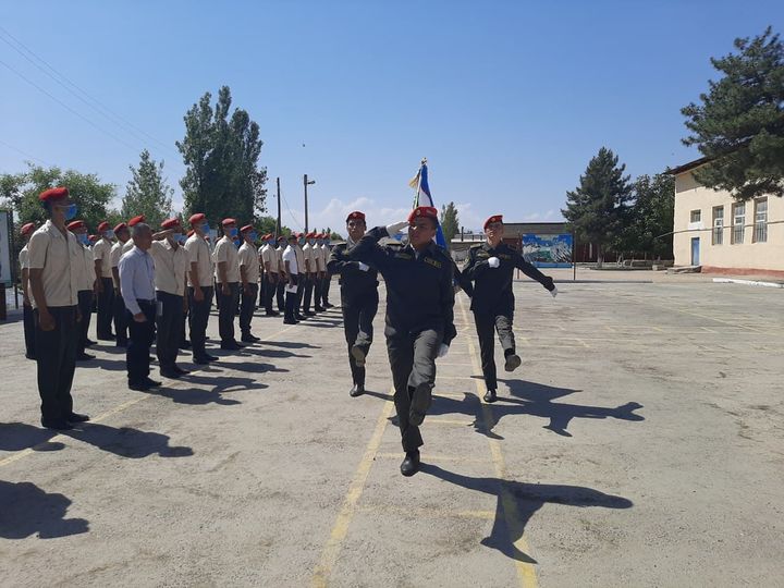 Tadbirda bitiruvchilar safda yurish va harbiy ko‘rgazmalarini namoyish etdi.