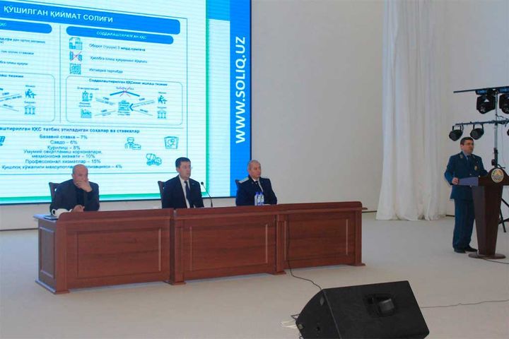 Tadbirda viloyat davlat soliq boshqarmasi boshligʻi Sh.Ahmedov 2019 yilga belgilangan soliq stavkalariga kiritilgan oʻzgarishlar toʻgʻrisida maʼlumot berdi.