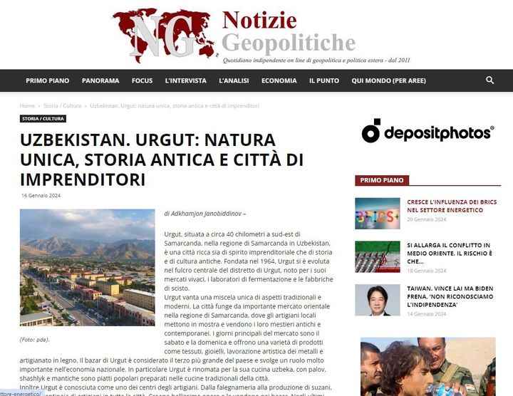 Bir necha o‘n millionlik obunachilarga ega “Notizie geopolitiche” (Geosiyosiy yangiliklar) nashrining navbatdagi sonida Urgut tumani haqida maqola chop etilgan bo‘lib, unda tumanning tabiatidan tortib, sanoatigacha hikoya qilinadi.