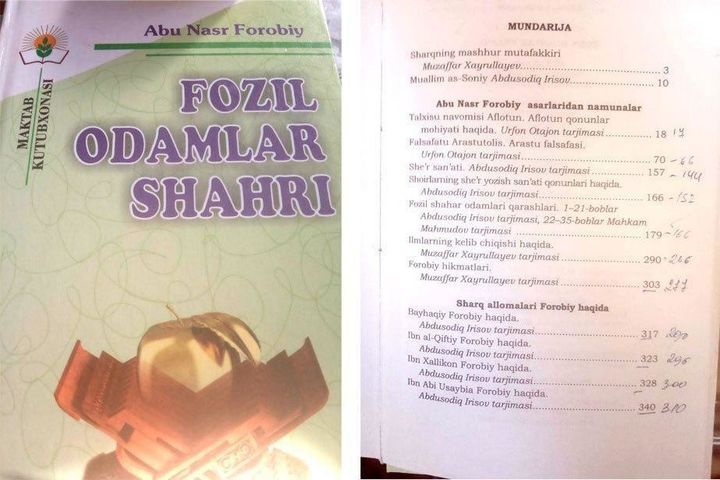 Men uzoq vaqt qidirib yurgan kitob — Abu Nasr Forobiyning "Fozil odamlar shahri" kitobini nihoyat topdim. Sabrim chidamasdan, uni varaqlay boshladimu hafsalam pir bo‘ldi...