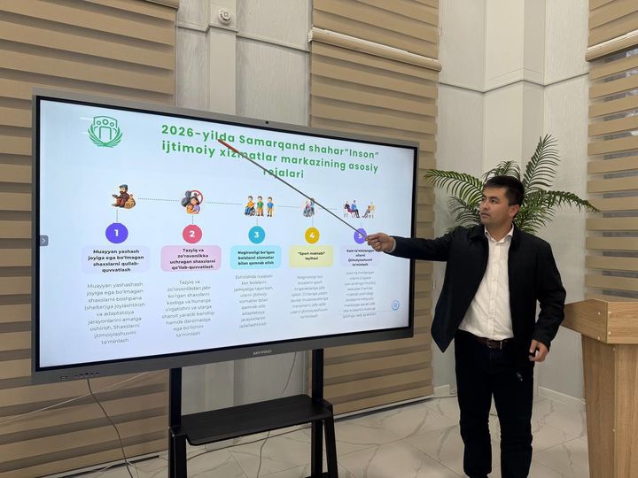 Viloyatimizda aholini ijtimoiy himoya qilish tizimini yanada takomillashtirish, mavjud muammolarni tahlil qilish va kelgusi ustuvor vazifalarni belgilab olish maqsadida barcha shahar va tumanlarda “Inson” ijtimoiy xizmatlar markazlari tomonidan 2025 yil yakuni va 2026 yilga mo‘ljallangan ustuvor vazifalarga bag‘ishlangan taqdimotlar tashkil etilyapti.