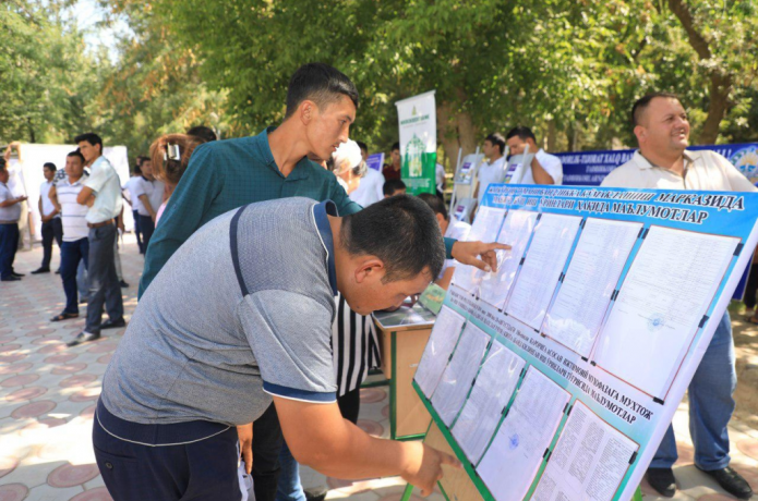 Aytilgan manzilga yaqinlashguncha u yerda hech kim ko‘rinmayotgani uchun balki manzildan adashdimmi, deb qayta xabarnomaga qaradim, to‘g‘ri kelyapman. Qayd etilgan vaqt o‘tib borayotgan bir paytda bir necha shahar bandlikka ko‘maklashish markazi xodimlari huquq-tartibot organlari xodimi bilan birgalikda u yerga fuqarolar tomonidan qo‘yib ketilgan avtomobillarni oldirish bilan band bo‘ldi. Qayerdandir stol-stullarni olib kelib, atrofda “sochilib” yurgan ish beruvchi korxona va tashkilotlar xodimlarini joy-joyiga o‘tqizguncha soat millari 9:30 dan ham o‘tdi. Endi fuqarolardan darak yo‘q, men esa keyingi tadbirga shoshyapman. Bir vaqt bir guruh oq-qora formadagi yigirmatacha qizni o‘qituvchisi boshlab kelib, ularga hech qayerga ketib qolmaslikni, shu atrofni aylanib yurishni qattiq tayinladi. “Aylanishga chiqqanlardan” bir nechasini suhbatga tortdim:
