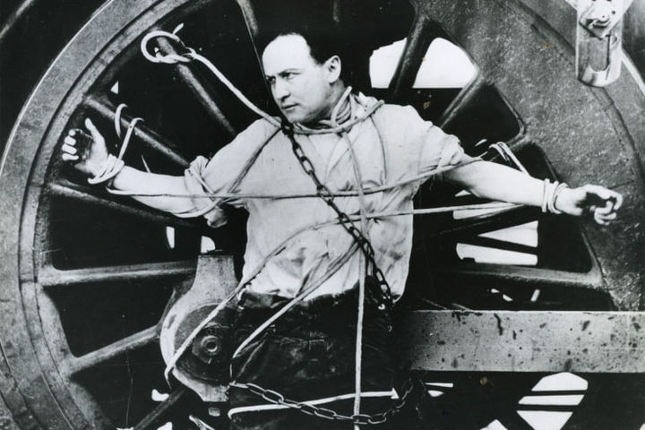 1903 yilda tomoshalardan birida uni kishanlab, bo‘yniga og‘ir temir shar bog‘lashib Temza (Angliya) daryosi ko‘prigidan suvga uloqtirishadi. Suv fokuschini o‘z domiga tortib ketadi. Ammo oradan bir necha daqiqa o‘tgach, u kishan va og‘ir shardan xolos bo‘lib daryodan chiqib keladi.