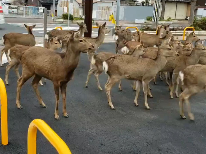 Yaponiyaning qadimiy poytaxti Narada shahrida joylashgan Nara qo‘riqxonasida 1300 ga yaqin bug‘ular to‘dasi yashaydi. Ushbu jonivorlar odamlar tomonidan beriladigan yegulik bilan oziqlanishga o‘rganib qolgan. Karantin sabab qo‘riqxonaga tashrif buyuruvchilar deyarli yo‘q. Shu bois bug‘ular yegulik ilinjida shahar bo‘ylab aylanib yuribdi.