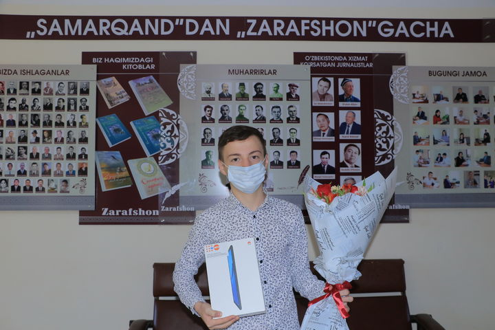 13-17 yoshli o‘smirlar o‘rtasida o‘tkazilgan tanlovning “Maqsadimga erishish yo‘lidagi g‘oyalarim” yo‘nalishi bo‘yicha 2-o‘rinni egallagan samarqandlik Temur Ergashevga ham tashkilotchilarning esdalik sovg‘asi topshirildi.