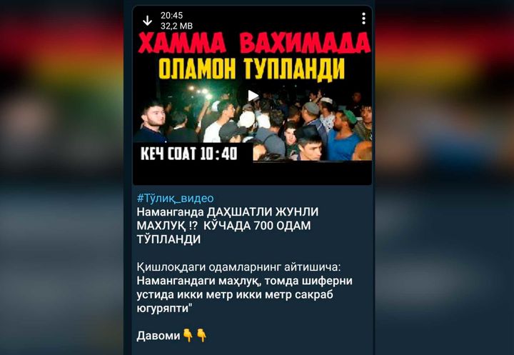 Eslatib o‘tamiz, aholi orasida vahima chiqarishga qaratilgan ma’lumotlar va materiallarni har qanday shaklda tarqatish javobgarlikka sabab bo‘ladi.
