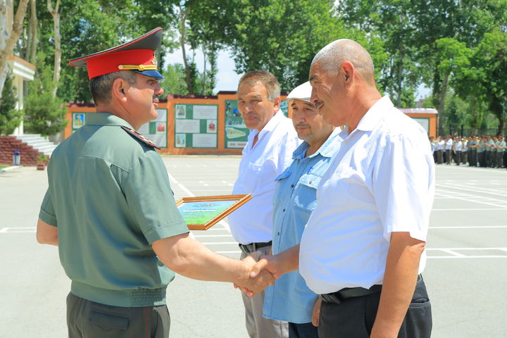 Shundan so‘ng saf maydonida Jizzax, Samarqand hamda Navoiy viloyatlaridagi harbiy qismlardan kelgan bir guruh harbiy xizmatchilar, shuningdek, nafaqaga chiqqan harbiylar va keksa avlod vakillariga okrug qo‘shinlari qo‘mondoni, polkovnik A.Saidov tomonidan esdalik nishoni, qimmatbaho sovg‘a, pul mukofotlari hamda faxriy yorliqlar topshirildi.