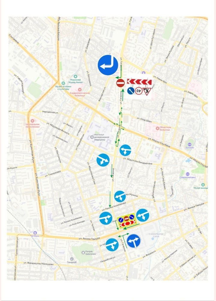 Ushbu ko‘chalarda tirbandliklarni oldini olish maqsadida Mirzo Ulug‘bek-Gagarin ko‘chalari chorrahasidan Amir Temur-Gagarin ko‘chalari chorrahasigacha bo‘lgan qismida Mirzo Ulug‘bek-Gagarin ko‘chalari chorrahasidan Farhod-Gagarin ko‘chalari chorrahasigacha bo‘lgan qismida 13 dekabr kunidan 23 dekabr kuniga qadar transport vositalarini harakatlanishi bir tomonlama tashkil etiladi. Bu haqda viloyat YHXB xabar tarqatdi.