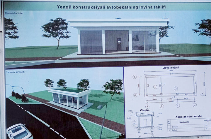 O‘rniga yangi zamonaviy do‘konli avtobekat qurish uchun tuman arxitektori tomonidan loyiha ishlab chiqilgan hamda tashabbuskor tadbirkorga berilib, zamonaviy avtobekatni qurish rejalashtirilgandi. Tadbirkorlar tomonidan tashabbus ko‘rsatilmaganligi sababli, zamonaviy avtobekat qurilmasdan qolgan. Joriy yil may oyining oxiriga qadar yengil konstruksiyali, zamonaviy metall avtobekat Uklon qishlog‘i tuman xalq ta’limi bo‘limiga qarashli 36-o‘rta maktab oldiga o‘rnatilishini ma’lum qilamiz”, deyiladi munosabatda.