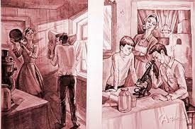 O‘g‘li ikkalasi mikroskop oldida soatlab o‘tirib olib, tadqiqot o‘tkazishadi. Quduqdan olingan suvning tomchisini, chelakdagini kuzatishadi, yomg‘ir yoqqanida yomg‘ir suvini tekshirishadi. Yana ota o‘g‘liga ko‘lmakdan namuna olib kelishga yuboradi. Ko‘lmak suvida oq tanachalar bijg‘ib yotardi.