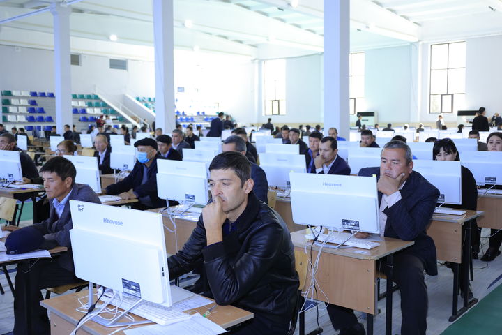 Viloyatimizda bo‘lib o‘tayotgan umumta’lim maktablari o‘qituvchilari uchun attestatsiya test sinovlarida har kuni mingdan ortiq pedagoglar jarayonda ishtirok etyapti. O‘qituvchilar uch bosqichda tekshiruvdan o‘tkazilib, ichkariga kiritilmoqda. Har bir stol ustida attestatsiya jarayonida nimalarga amal qilish kerakligi haqida yo‘riqnoma mavjud.