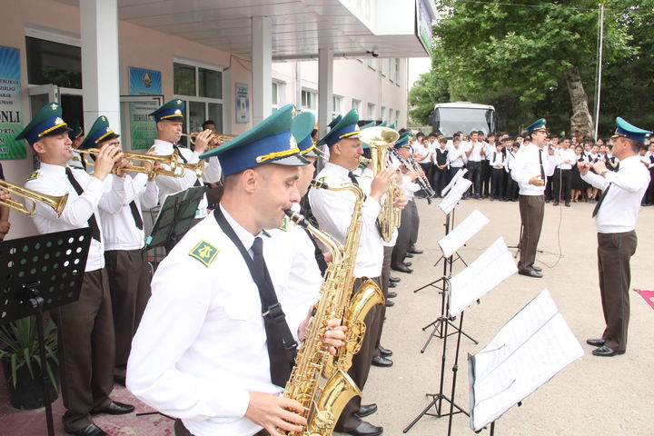 O‘quv yilining tugashi arafasida maktabda DXX Chegara qo‘shinlari harbiy orkestri tomonidan konsert dasturi uyushtirildi