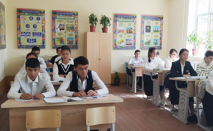 Asosan yuqori sinflar davomati bilan qiziqdik. Maktabda uchta 10-sinf va bitta 11-sinf bo‘lib, ularda 87 nafar o‘quvchi ta’lim olar ekan.