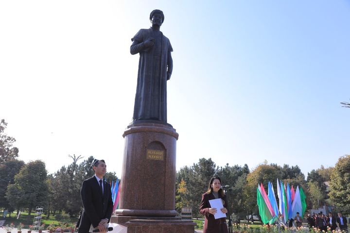 Shundan so‘ng hazrat Alisher Navoiy haykali poyiga gullar qo‘yildi.