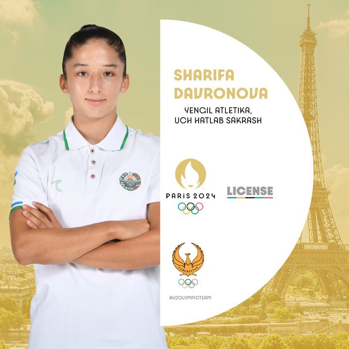 Uch hatlab sakrash dasturida samarqandlik Sharifa Davronova ham olimpiya o‘yinlariga yo‘llanmani qo‘lga kiritdi. Sharifa yengil atletika bo‘yicha Osiyo va jahon chempioni, Osiyo o‘yinlari g‘olibi bo‘lgan. O‘tgan yilda Osiyo yengil atletika assotsiatsiyasi tomonidan “Yilning eng yaxshi yosh yengil atletikachisi” ham deb topilgandi.