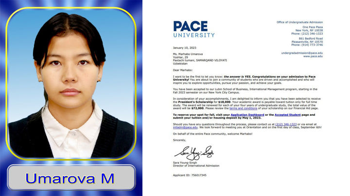 Paxtachilik o‘quvchini uchta xorijiy universitet o‘qishga qabul qilib jami 160 ming dollarlik grant taklif qildi