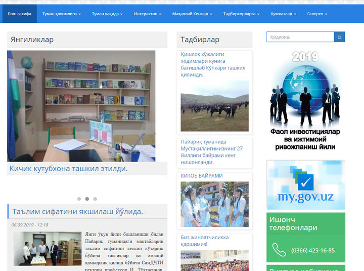 Payariq tumani hokimligining www.sampayarik.uz saytini (oxirgi ma’lumot 28 avgust kuni 14:41 da joylashtirilgan) ochganingizdanoq ko‘zingiz darhol fotosuratlarga tushadi. Qishki kiyimlardagi kishilar ishtirokidagi tadbirlardan lavhalarni ko‘rib, sayt anchadan beri yangilanmagan bo‘lsa kerak, degan xulosaga kelasiz.