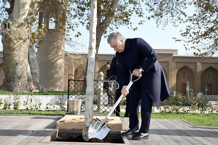 Allomaning ruhlari yodga olinib, Qur’on tilovati qilindi. Prezident ziyoratgohda daraxt ekdi.