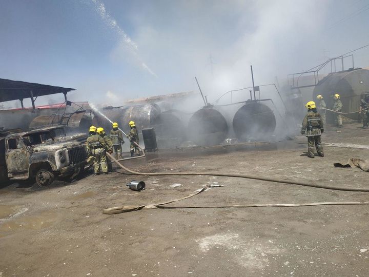 Birlamchi ma’lumotlarga ko‘ra, yong‘in natijasida yer ustida joylashgan 25 tonnalik 2 ta sig‘im va 2 ta “ZIL-130” yoqilg‘i tashish avtomashinalari yongan. Bundan tashqari, ushbu sig‘imlar yonida 10 tonnalik 3 ta bo‘sh, taxminan 30-50 tonnalik 2 ta sig‘im joylashgan.