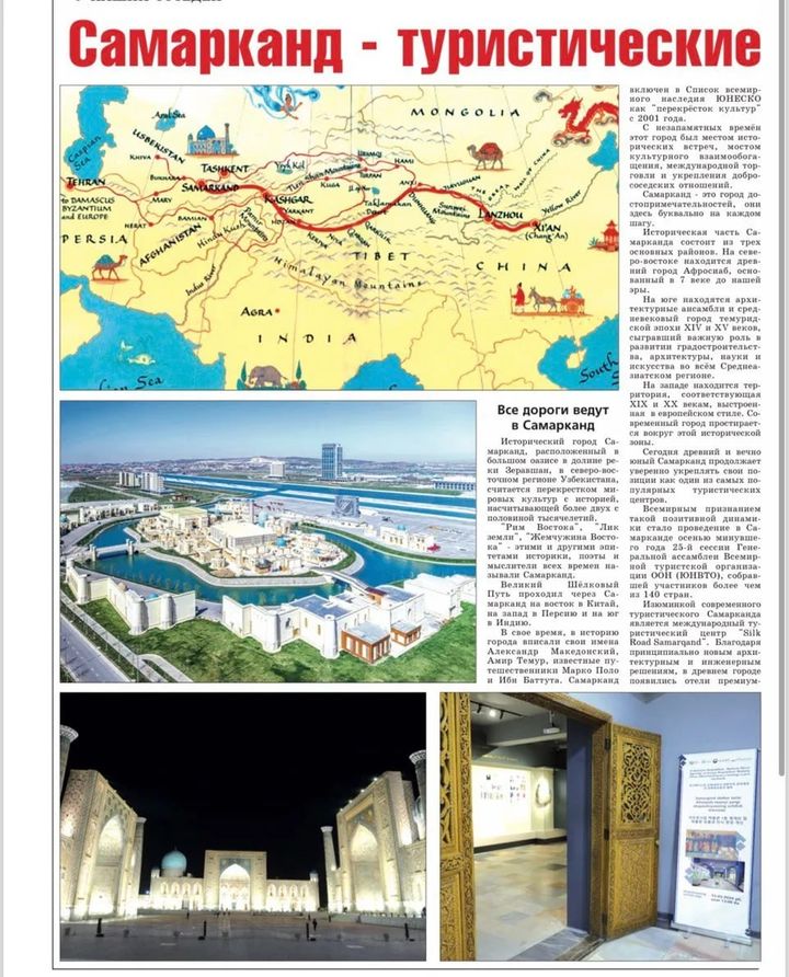 Qirg‘izistonning ommabop "Slovo Kirgizstana" gazetasida "Samarqand – Yangi O‘zbekistonning turizm darvozasi: barcha yo‘llar Samarqandga olib boradi" sarlavhali maqola chop etildi.