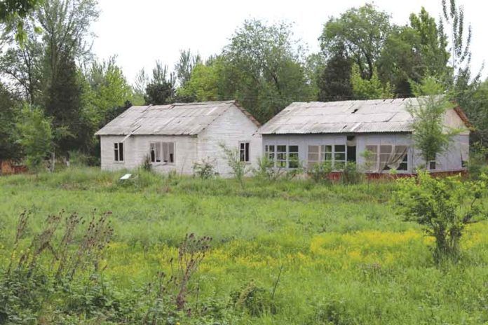 Tabaqalari zanglagan, yon-atrofini o‘t-o‘lanlar qoplagan darvozani zo‘rg‘a ochib, ichkariga mo‘raladik. So‘ngra arang yo‘l topib, mung‘ayib turgan binolar oldiga bordik. Nazarimizda, bu go‘shaga anchadan buyon odam oyog‘i tegmagan ko‘rinadi.