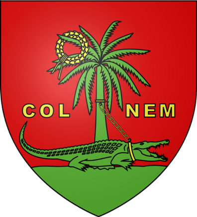 Ushbu manzilgohning ramziy belgisi, palma daraxtiga zanjirlangan timsoh Misr qirolligining Rim tomonidan bosib olinganligiga kinoya qilib, qadimgi davrlarga borib taqaladi.