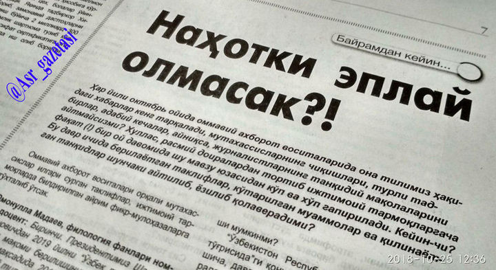 Bu xavotir kuni kecha olis viloyatdagi tumanda ochilgan kichik do‘konning tepasiga “mi otkrilis” degan e’lon ilinganda yana bir quvvat oldi. Axir o‘sha tumanda 0,01 foiz ham rus tilida gaplashadigan odam yo‘q, e’lonning mazmunini ham nari borsa 15-20 foiz odam, ularning ham ko‘pchiligi tusmollab tushunadi.