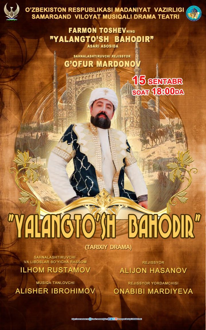 Samarqand hokimi va sarkarda Yalangto‘sh Bahodir haqida tarixiy drama yaratildi
