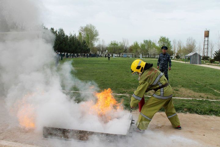 Tadbirda “Ishg‘ol qilish narvoni orqali o‘quv minorasining 4-qavatiga ko‘tarilish”, “Yong‘in o‘chirish avtomobilidan jangovar yoyilish” va “Yong‘in o‘chirish estafetasi” shartlari bo‘yicha ishtirokchilar o‘zlarining markazda olgan bilim va mahoratlarini namoyish etishdi.