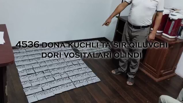 2-12 iyul kunlari O‘zbekiston Respublikasi IIV va Samarqand viloyati IIB xodimlari tomonidan Namangan viloyatining Uchqo‘rg‘on tumanida yashovchi erkak va ayol katta miqdorda kuchli ta’sir qiluvchi dori vositalarini Toshkent shahri, Samarqand, Buxoro, Navoiy, Qashqadaryo, Surxondaryo, Xorazm va boshqa viloyatlardagi tanishlariga, sotayotganligi to‘g‘risidagi ma’lumotlar asosida tezkor-qidiruv tadbirlari o‘tkazilgan.