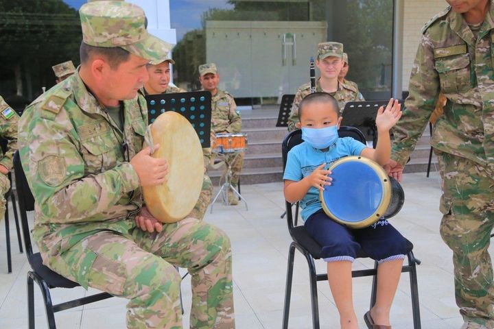 Mashg‘ulotlar davomida beshta muhim tashabbusning birinchi yo‘nalishiga, ya’ni san’atga qiziqishi bo‘lgan yoshlar ham harbiy akalari bilan birgalikda cholg‘u asboblarida go‘zal kuy-qo‘shiqlar ijro etishdi.