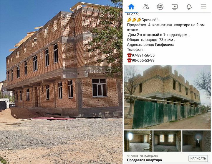 Unda bildirilishicha, mojaroli, necha bor "qurilishi to‘xtatildi" deb ma’lumot berilgan uy "srochno sotiladi" degan e’lonlar paydo bo‘lgan.
