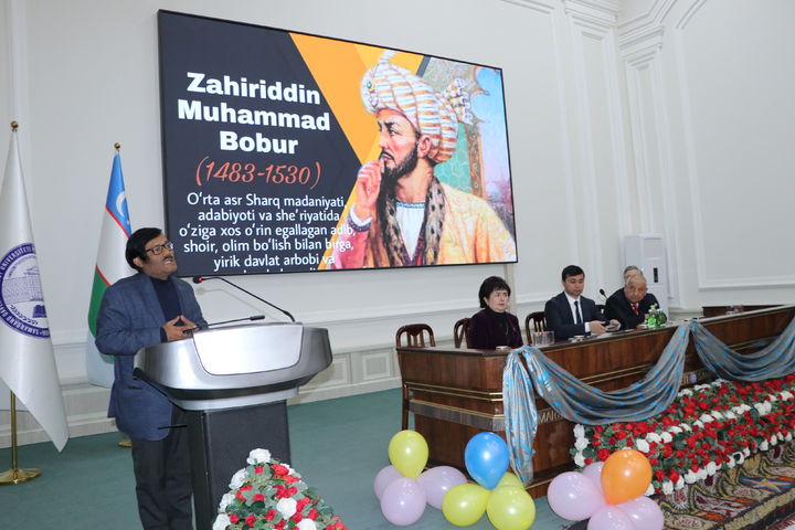 Unda Hindistondagi Javoharlal Neru universiteti Markaziy Osiyo tadqiqotlari instituti rahbari, Boburshunos olim, professor Ahmad Axlok Axan ishtirok etib, u rahbarlik qilayotgan muassasada Zahiriddin Muhammad Bobur hayoti, davlat arbobi sifatidagi faoliyati va ijodini o‘rganish borasida amalga oshirilayotgan ishlar, ulug‘ bobomizning bunyodkorlik ishlari haqida so‘z yuritdi.