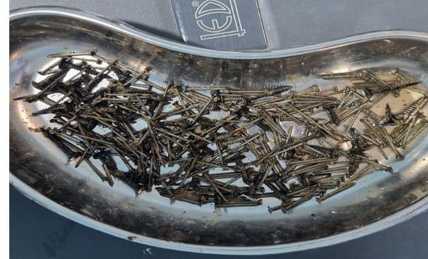 Shoshilinch qabul bo‘limida o‘tkazilgan diagnostika va laboratoriya tahlillariga ko‘ra, bemorning me’da ichak tizimida katta miqdorda temir jismlar, xususan, mix va samorezlar borligi aniqlandi.
