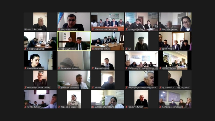 Oliy Majlis Senatining Axborot siyosati va mahalliy davlat organlarida ochiqlikni ta’minlash masalalari qo‘mitasi raisi o‘rinbosari F.Boqiyev hamda mazkur qo‘mita a’zosi F.Toshev ishtirokida xalq deputatlari Samarqand viloyati va tuman, shahar Kengashlari doimiy komissiyalari raislari hamda kotibiyat mudirlari bilan ZOOM orqali o‘tkazilgan yig‘ilishda yalpi majlisda ko‘rib chiqilgan ana shu masalalar haqida batafsil ma’lumot berildi.