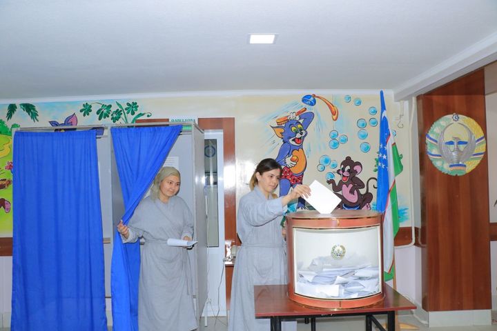 Samarqand shahridagi 1-bolalar shifoxonasida tashkil etilgan 121-saylov uchastkasida muassasada salomatligini tiklayotgan bolajonlarning ota-onalari ham ovoz berish jarayonida ishtirok etmoqda.