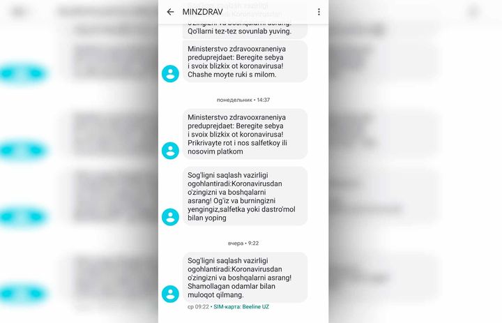 Afsuski, ushbu SMS xabarlarni noto‘g‘ri talqin qilish, mazmunini sun’iy ravishda o‘zgartirib berish orqali aholi orasida vahima uyg‘otayotganlar ham uchramoqda. Jumladan, ijtimoiy tarmoqlarda vazirlik nomidan “koronavirusdan saqlanish uchun alkogol mahsulotlarini tez-tez iste’mol qilish lozim” mazmunidagi xabarlar mutlaqo yolg‘on va Sog‘liqni saqlash vazirligi tomonidan bunday SMS xabar yuborilmagan.