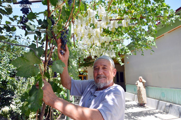 Mahallada nafaqat hovlilar, balki uylarning tashqarisida, ko‘cha bo‘ylarida ham xonadon egalari ishkom qilib, uzum yetishtirayotganini ko‘rish mumkin.