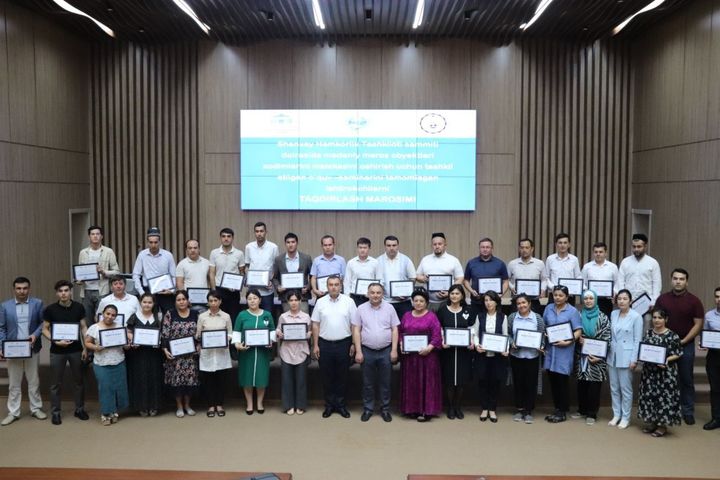 Yaqinda madaniy meros ob’yektlarida ishlovchi 69 nafar xodim uchun tashkil etilgan o‘quv-kurslar yakunlandi. Shu munosabat bilan tashkil etilgan tadbirda viloyat hokimining o‘rinbosari – viloyat turizm va madaniy meros bosh boshqarmasi boshlig‘i R.Qobilov va Turizm va madaniy meros vazirligi boshqarma boshlig‘i A.Eshtoyev tinglovchilarga sertifikatlar topshirdi.